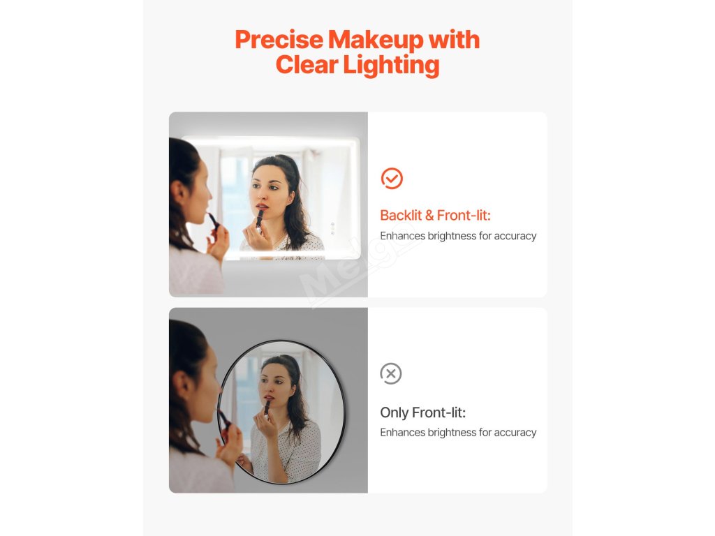 Toto osvětlené koupelnové zrcadlo se neomezuje pouze na domácí použití - bez problémů se hodí do salonů, hotelů, kanceláří a dalších veřejných prostor. Nabízí pohodlí a zároveň zvyšuje celkový styl a funkčnost každé místnosti.