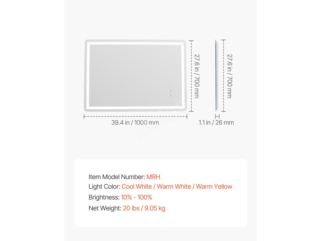 Toto koupelnové zrcadlo s led osvětlením simuluje různé světelné atmosféry a umožňuje přepínat mezi studenou bílou, teplou bílou a teplou žlutou barvou a vytvořit tak dokonalé osvětlení pro přirozené líčení. Bez námahy splňuje potřeby osvětlení pro různé příležitosti.