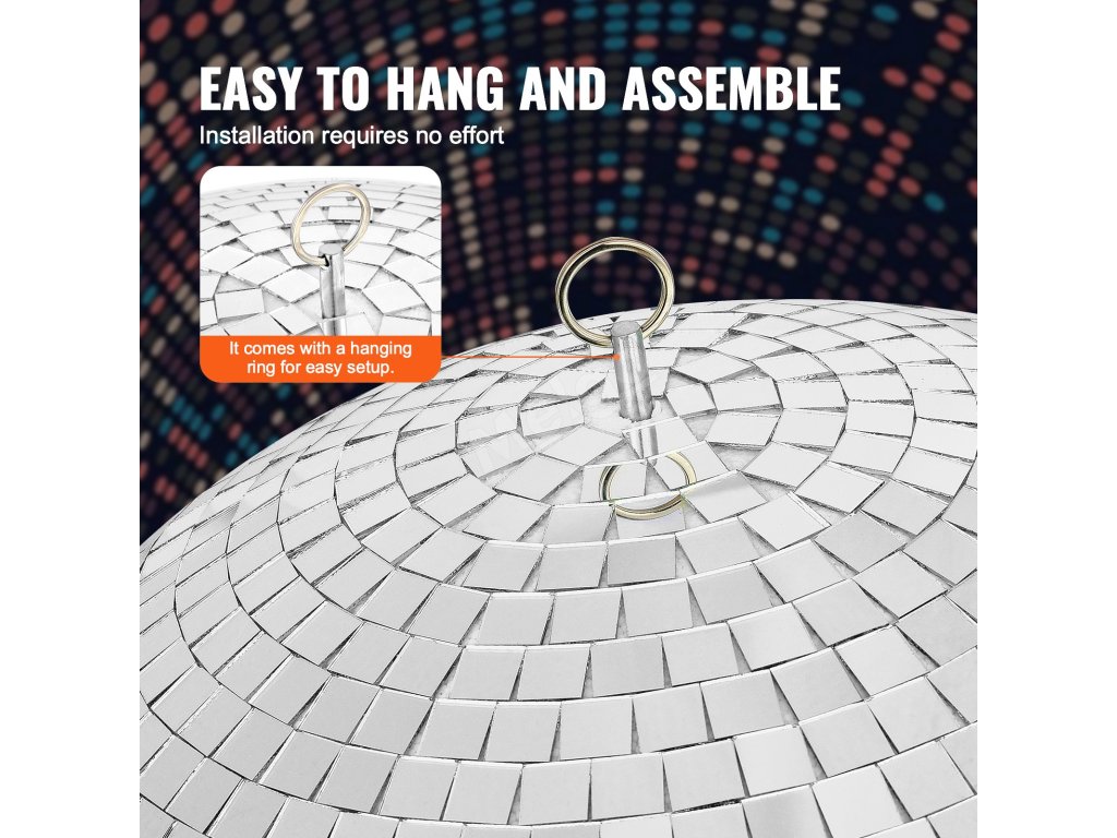 Tato zrcadlová diskotéková koule vyrobená z tisíců čirých skleněných zrcadel vytváří jasná blikající světla (vyžaduje motor a reflektor, prodává se samostatně) a dodá zábavu a vzrušení při jakékoli příležitosti.