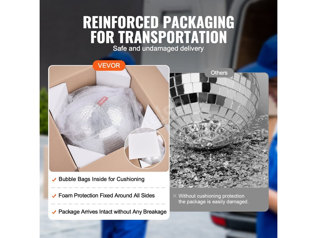 Naše dekorace s diskokoulí je zabalena v bublinkové fólii a pěně, aby byla během doručení chráněna a nedošlo k jejímu poškození.