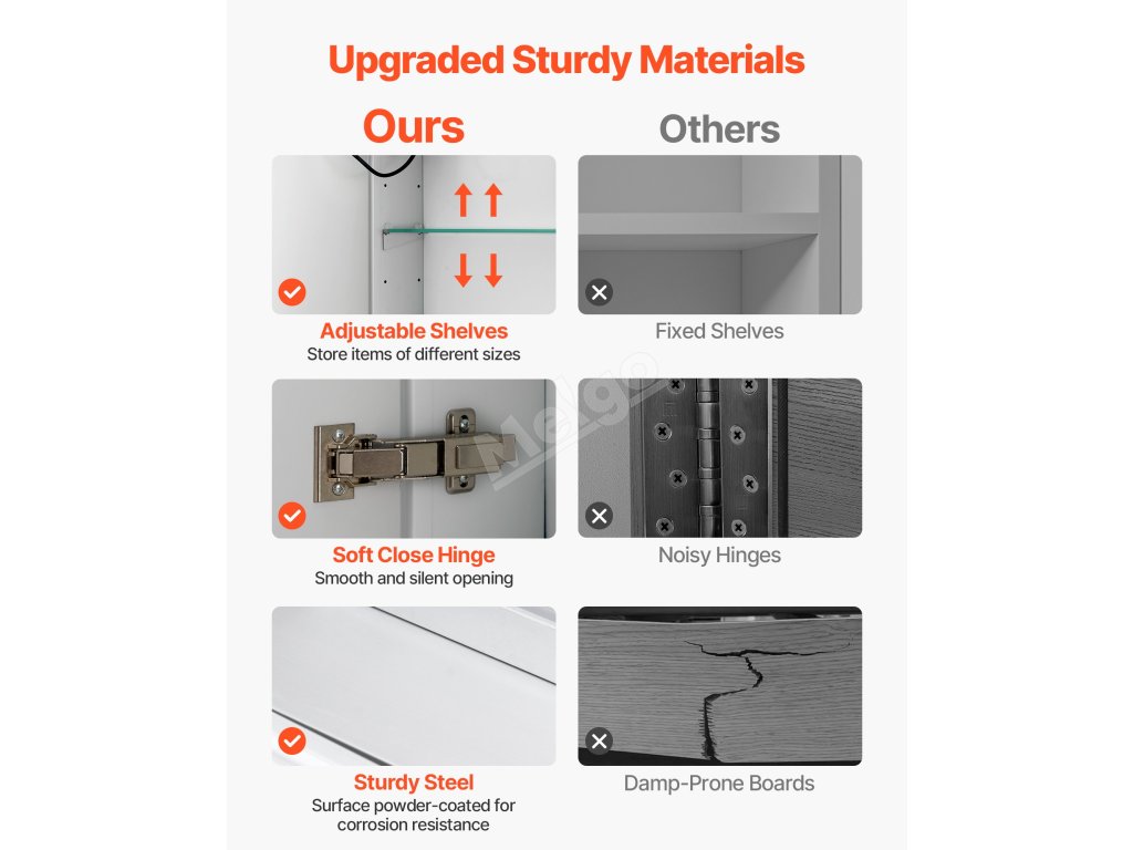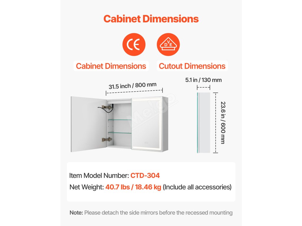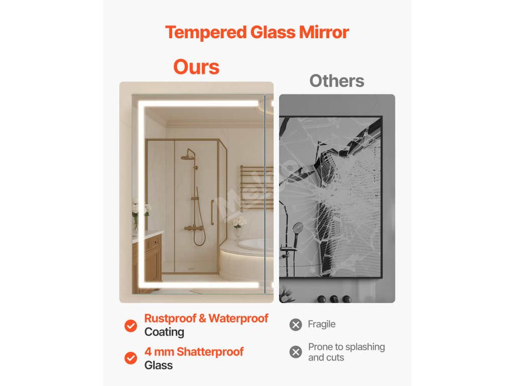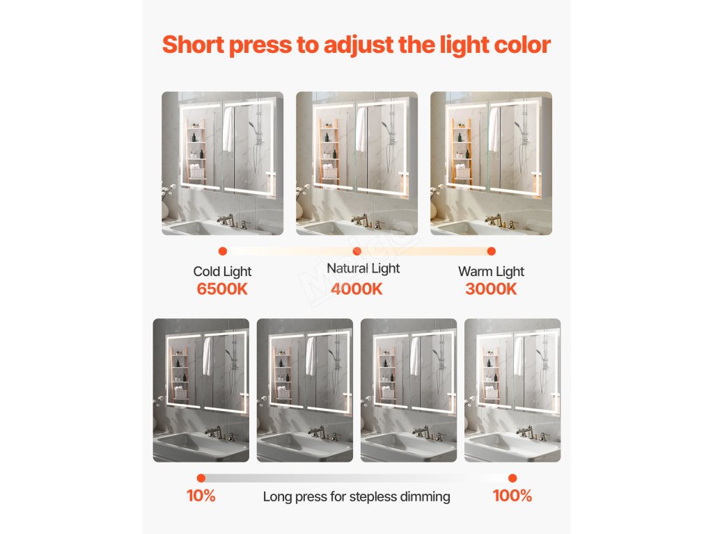 Tato zrcadlová skříňka LED nabízí vysoké světlo pro líčení a nízké teplé světlo pro jemné noční mytí. Paměťová funkce automaticky vyvolá poslední nastavení jasu. Splní vaše potřeby osvětlení v různých denních dobách