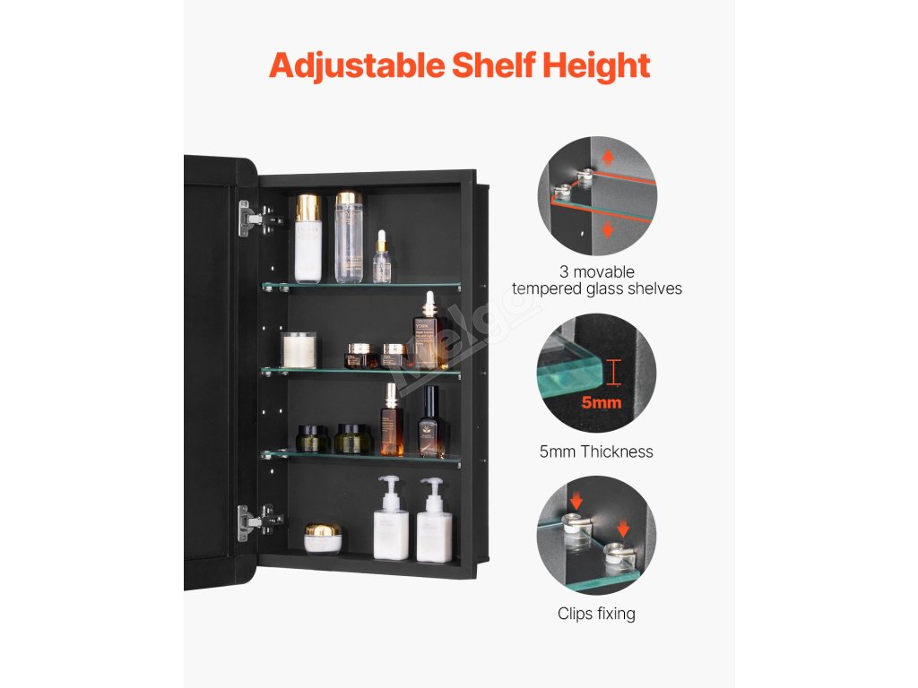 Zrcadlové police v lékárničce se snadno nastavují nahoru a dolů a poskytují individuální úložný prostor pro předměty všech velikostí - ideální pro vysoké lahvičky, malé kosmetické přípravky a vše mezi tím.