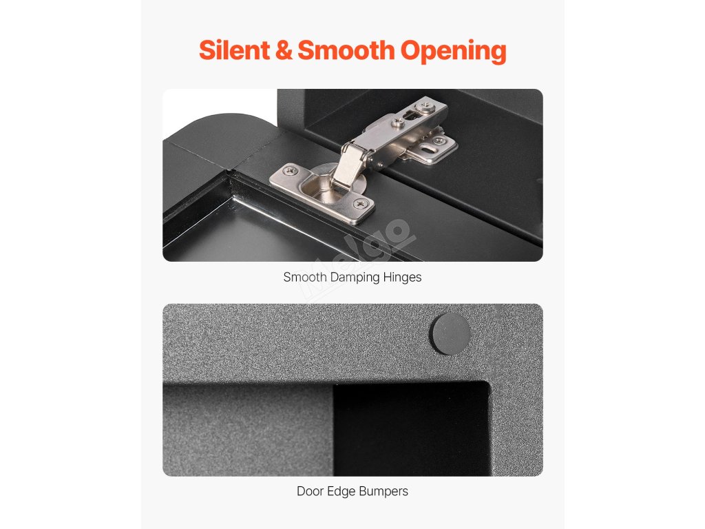 Nástěnný držák zjednodušuje instalaci a zároveň zvyšuje stabilitu. Skříňka na léky se zrcadlem je vybavena hladkými tlumenými závěsy pro tichý chod dveří a prvotřídními tlumicími podložkami, které minimalizují hluk a nárazy při zavírání.