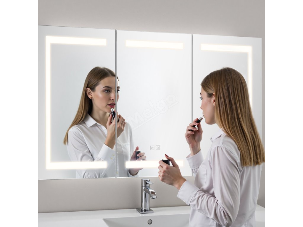 Zrcadlová skříňka do koupelny 100×60 cm, 3-barevné stmívatelné led