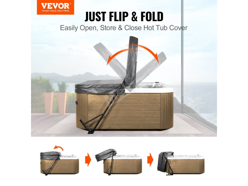 Zdvihák krytu vírivky VEVOR uľahčuje používanie vírivky jednou osobou. Šetrí čas a znižuje námahu. Kryt vírivky môžete bez námahy otvárať a zatvárať. Tým sa vaša rutinná činnosť stáva efektívnejšou. Zdvihák eliminuje potrebu ďalšej pomoci. Vďaka svojej konštrukcii umožňuje plynulé a rýchle ovládanie. Preto je to skvelé riešenie pre tých, ktorí svoje kúpele používajú často. Tento zdvihák zaručuje, že váš zážitok bude vždy pohodlný a príjemný.