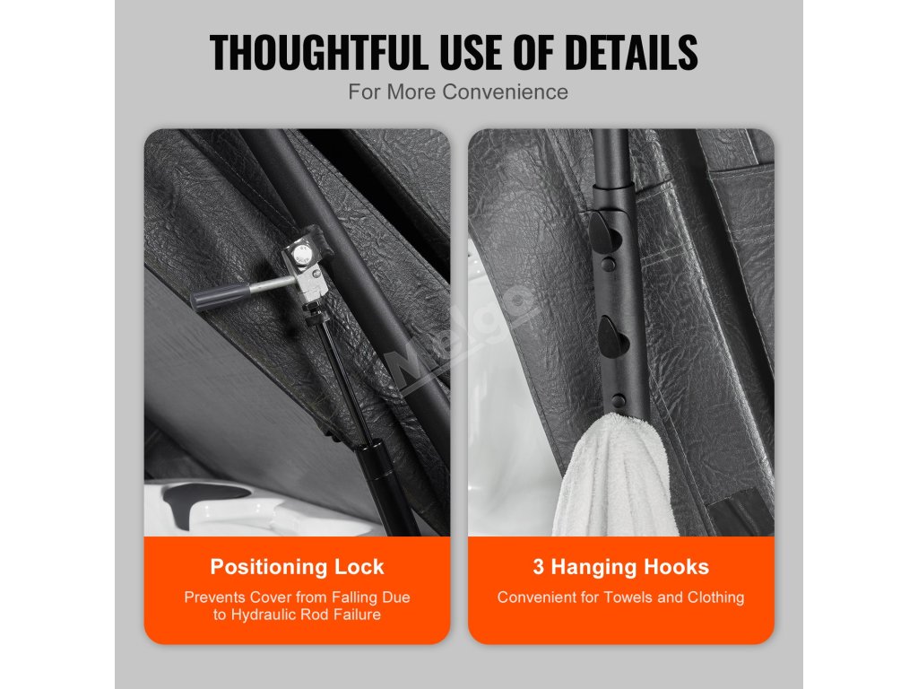 Tento hydraulický reverzibilní zvedák vířivky s horní montáží je spolehlivější a bez námahy. Stačí otočit kryt vany a zajistit jej otočením polohovacího zámku ve směru hodinových ručiček, čímž se rozloučíte s potížemi s těžkými kryty van, které se obtížně otevírají a ukládají.