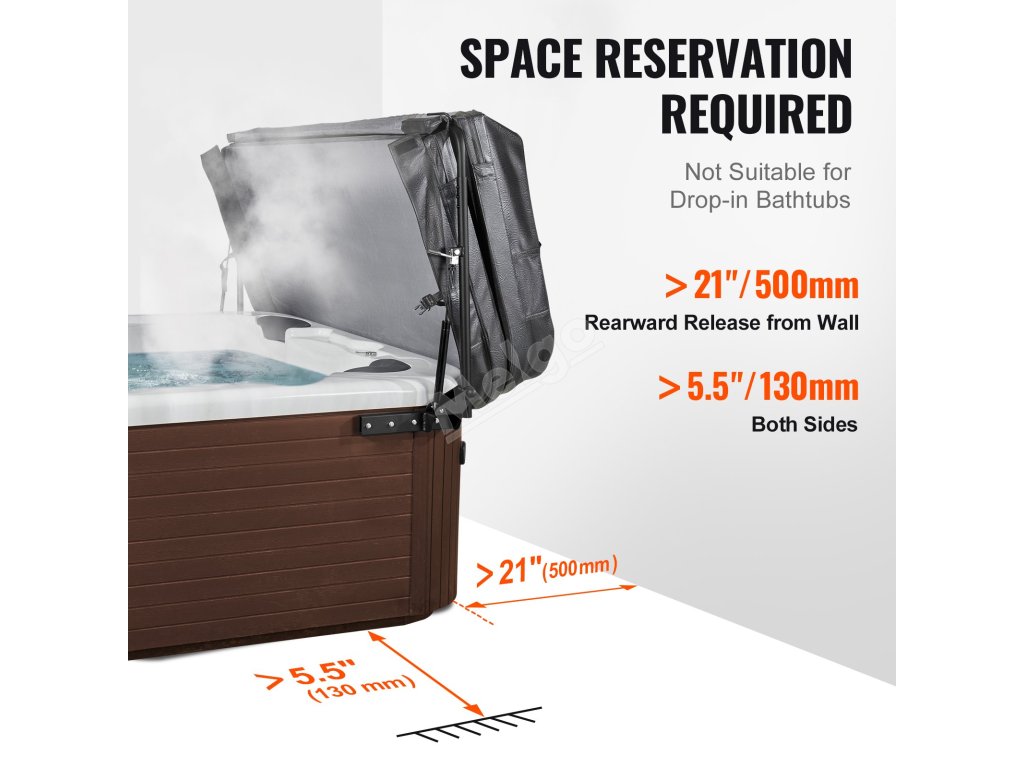 Zvedač krytu vířivky hydraulický, šířka 69"–96.5" (175.3–245 cm)