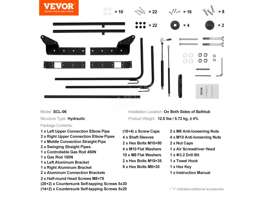 Tento zvedák víka vany je kompatibilní s běžně dostupnými obdélníkovými vanami na trhu. Pro zajištění kompatibility je však třeba změřit poloměr rohů vaší vany.
