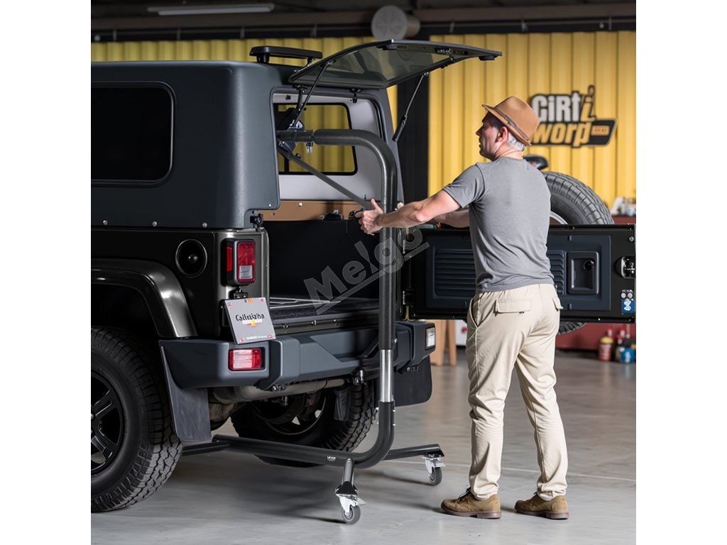 Zvedák pro demontáž pevné střechy Jeep, snadná obsluha jednou osobou