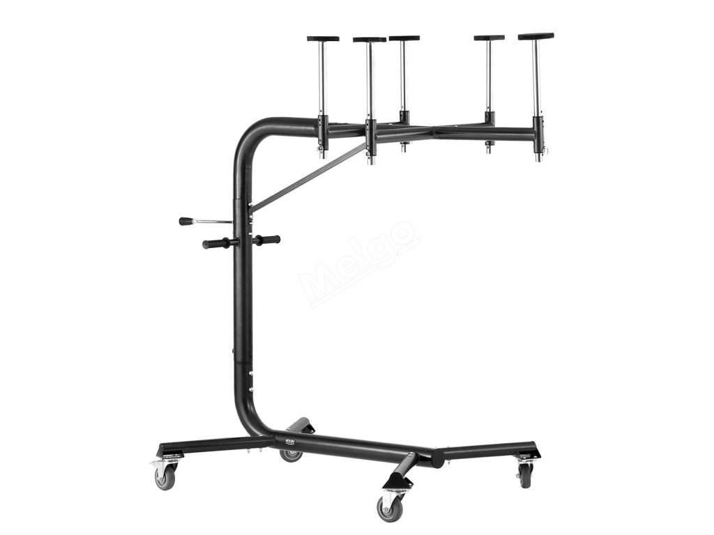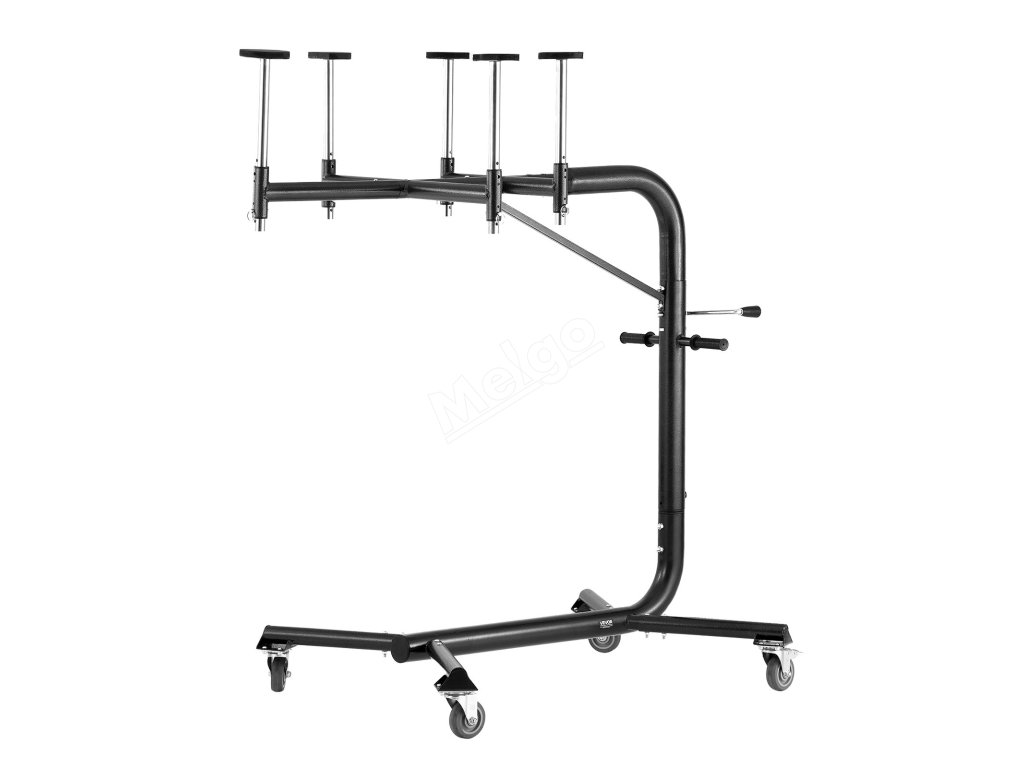 Pomocí otočné kliky lze zvedák pro demontáž pevné střechy snadno nastavit pro různé výšky vozidla v rozsahu od 57,1 do 87,6 palce (1450-2225 mm).