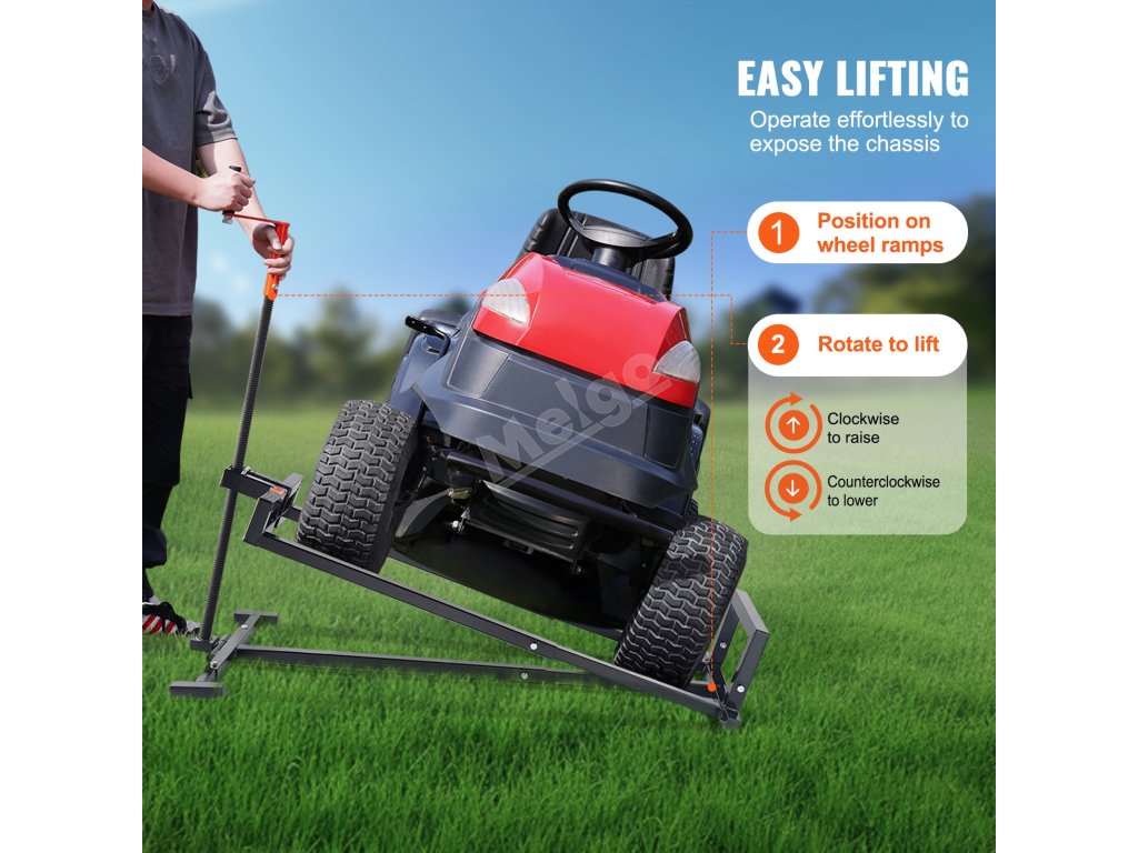 Tento zvedák pro sekačky na trávu má jednoduchou, ale robustní konstrukci, která minimalizuje riziko zlomení. Díky své silné nosnosti je kompatibilní s různými sekačkami na trávu s pojezdem, čtyřkolkami a zahradními traktory.