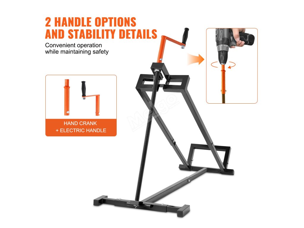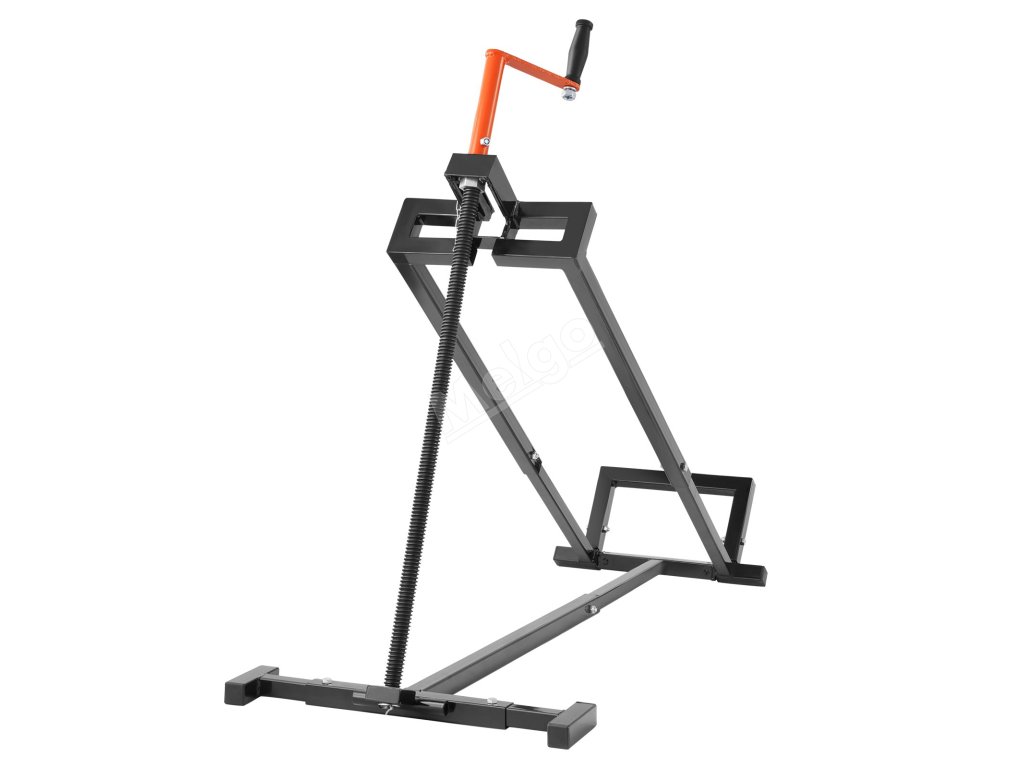 Jakmile vozidlo zaparkujete na zvedáku sekačky, jednoduše otočte rukojetí a bez námahy jej zvedněte. Pokud šířka zadních kol sekačky přesahuje limit, můžete zvedák použít také zvednutím předních kol.