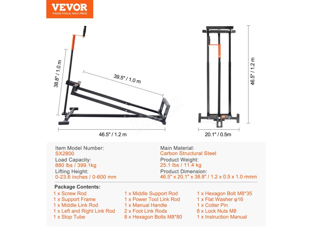 Zvedák pro sekačku a zahradní traktor 880 lbs, teleskopický, skládací