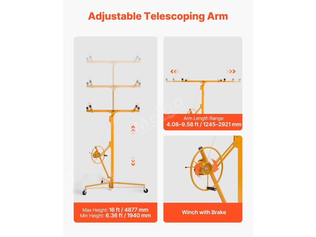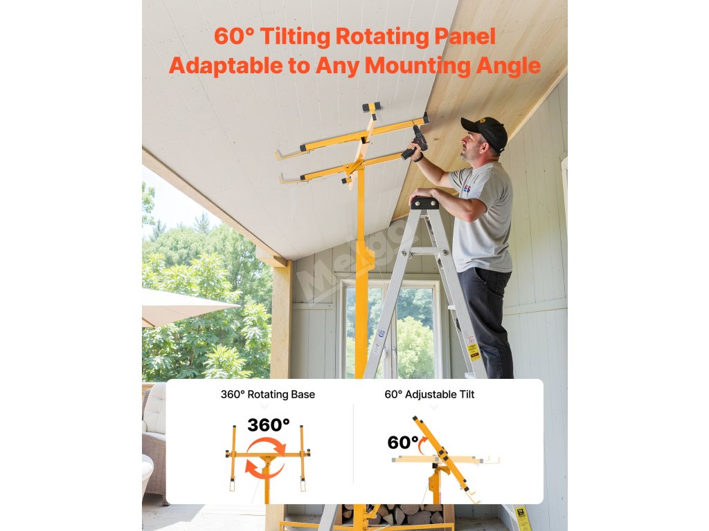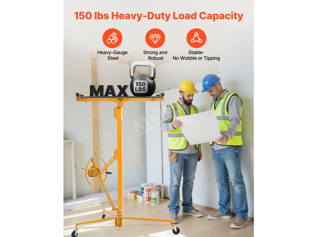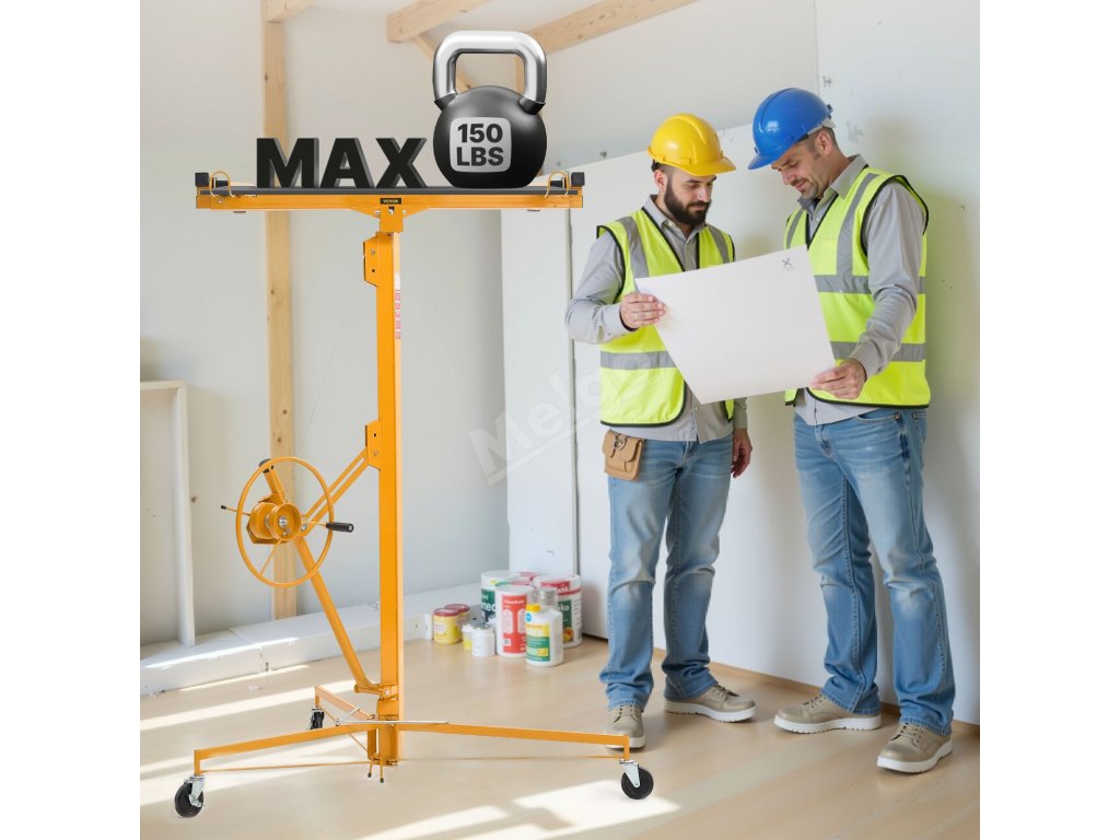 Montáž nebo demontáž během několika sekund bez použití nářadí. Nosnost až 150 liber. Je vybaven kolečky s brzdami pro vynikající stabilitu a hladký pohyb, takže je ideální pro snadnou instalaci sádrokartonových desek na stropy a stěny.