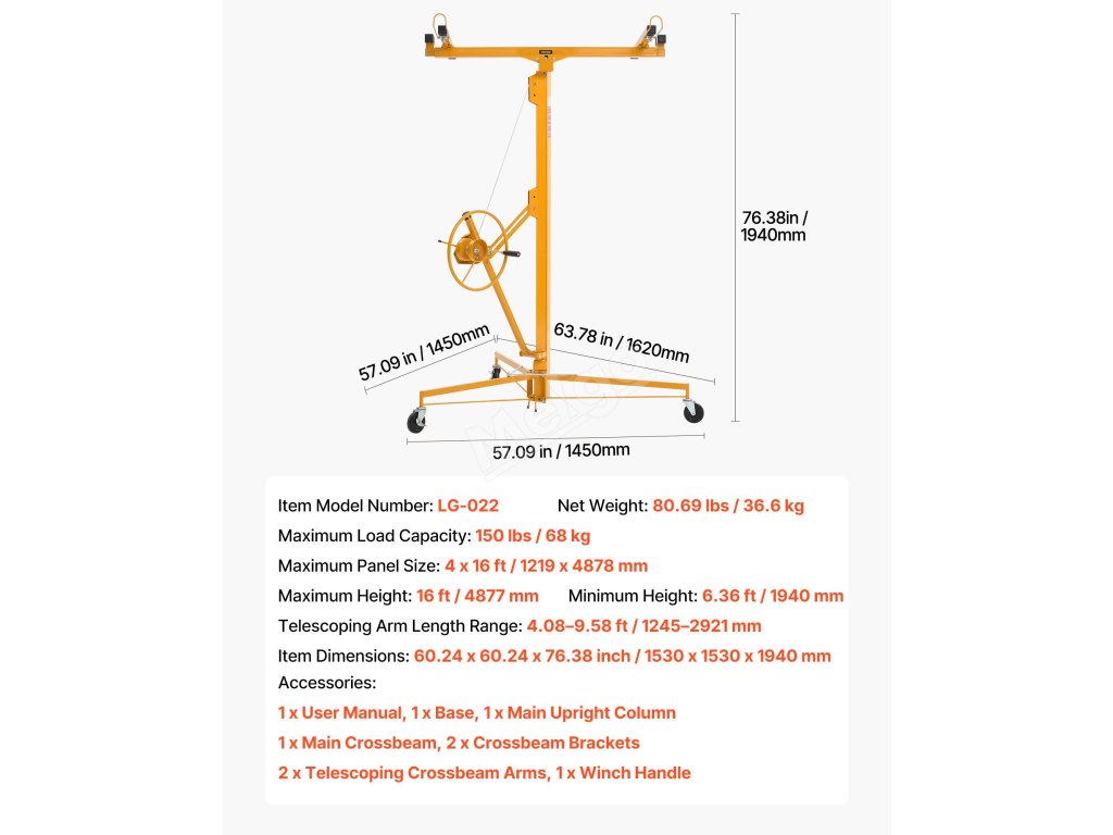 Zvedák sádrokartonu 4877 mm, nosnost 68 kg, teleskopické rameno