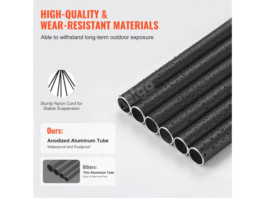 Naše venkovní zvonkohry jsou vyrobeny z pevných materiálů, jako je nylonové lanko a hliníkové trubky, které zajišťují vynikající odolnost a stabilitu.Jsou navrženy tak, aby poskytovaly dlouhotrvající výkon a krásný zvuk po mnoho let.